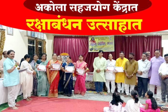 अकोला : परम पूजनीय श्री माताजी यांच्या परम कृपेमध्ये दिनांक १०.०८.२५ रोजी सहज योग मुख्य ध्यान केंद्र अकोला येथे सहज संगीत स्पर्धा व रक्षाबंधनाचा कार्यक्रम आयोजित करण्यात आला होता.