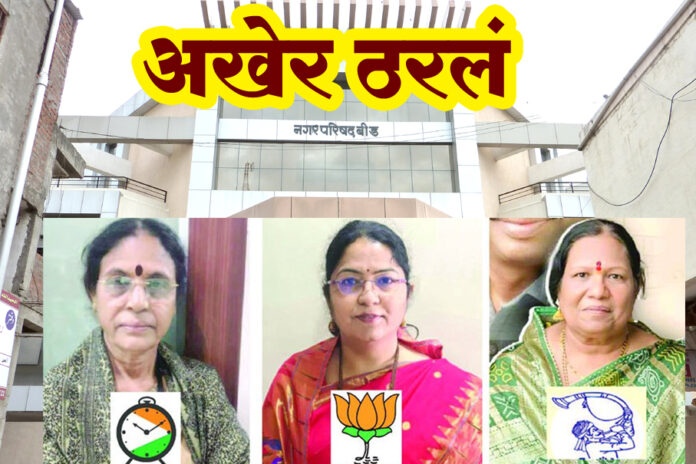 बीड : उमेदवारी अर्ज दाखल कण्याच्या शेवटच्या क्षणी सर्वच पक्षांनी आप आपल्या उमेदवारांचे नाव घोषीत करून अंदाज बांधणार्यांना एकप्रकारे धक्का दिला. अजितदादांच्या राष्ट्रवादीकडून शेख मुजीब यांच्या हातात घडी बांधण्यात आली तर तिकडे कालच भाजपात डेरेदाखल झालेले योगेश क्षीसागर यांनी डॉ. घुंबरे यांच्या पत्नीला उमेदवारी देऊन भाजपाला चर्चेत आणले. शरद पवारांच्या राष्ट्रवादीकडून अनेक नाव चर्चीले जात होते मात्र ऐनवेळेस विष्णू वाघमारे यांच्या पत्नींची उमेदवारी घोषीत करण्यात आली. तर एमआयएमही निवडणूक रिंगणात उतरल्याने बीड नगपालिकेची निवडणूक ही अत्यंत लक्षवेधक आणि चित्तथरारक होण्याची शक्यता आहे. बीड नगरपालिका अध्यक्षपदासाठी कोण उमेदवार असणार? यावर गेल्या पंधरा दिवसांपासून चर्चा होत होती. एकाही पक्षाने शेवटच्या क्षणापर्यंत अध्यक्षपदाच्या उमेदवाराची घोषणा केली नाही. उमेदवारी अर्ज दाखल करण्याला अर्धा तास राहिला तोपर्यंत एका एका पक्षाकडून उमेदवारांचे नाव समोर येत राहिले. सर्वप्रथम नाव आले अजितदादांच्या राष्ट्रवादीकडून शेख मुजीब यांच्या हाती अजितदादांनी घड़ी बांधली, मुजीब हे या ते निवडणुकीमध्ये आपल्या सासुला किंवा पत्नीला निवडणूक रिंगणात उत्तरवू शकतात. त्या दोघींनीही प्रेमलता दादाराव पारवे व तेजस्विनी दादाराव पारवे या दोघींनी उमेदवारी अर्ज दाखल केले आहेत. इकडे भाजपात कालच डेरेदाखल झालेले डॉ. योगेश क्षीरसागर यांच्या नेतृत्त्वात भाजप उद्याची निवडणूक लढवत असून योगेश क्षीरसागर यांनी डॉ. घुंबरे यांच्या पत्नी डॉ. ज्योती घुबरे यांना उमेदवारी घोषीत केली. शेवटच्या क्षणापर्यंत
