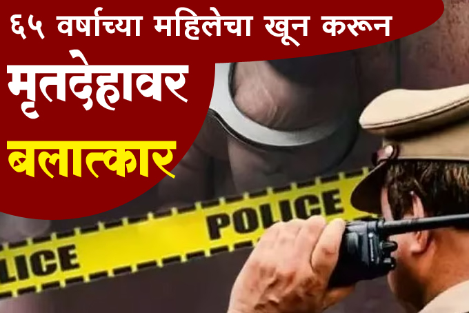 वृद्ध महिलेची हत्या करून तिच्या मृतदेहावर बलात्कार केल्याची धक्कादायक घटना घडली. पोलिसांनी २४ वर्षीय आरोपीला अटक केली. हा तरुण महिलेवर बलात्काराच्या उद्देशाने अंधारात तिचा पाठलाग करत होता. महिलेने या तरुणाला विरोध केला तर त्याने तिची धारधार शस्त्राने निर्घृण हत्या केली. हत्यानंतर त्याने मृतदेह झाडाझुडपात नेला आणि त्याठिकाणी महिलेच्या मृदेहावर बलात्कार केला. या घटनेनंतर आरोपी फरार झाला होता. पोलिसांनी आरोपीचा शोध घेत बेड्या ठोकल्या.