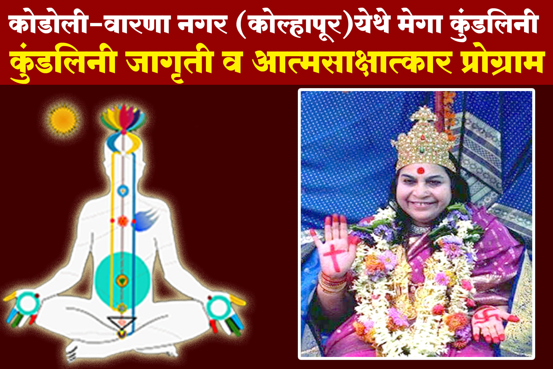 परमपूज्य श्री आदिशक्ती माताजी निर्मलादेवी यांचे आशीर्वादाने कोडोली,तालुका पन्हाळा जिल्हा कोल्हापूर येथे कुंडलिनी शक्तिची जागृती व आत्मसाक्षात्कार हा कार्यक्रम दिनांक ५ॅ एप्रिल २ॅ०ॅ२ॅ६ॅ वार रविवार आयोजित करण्यात आला आहे.